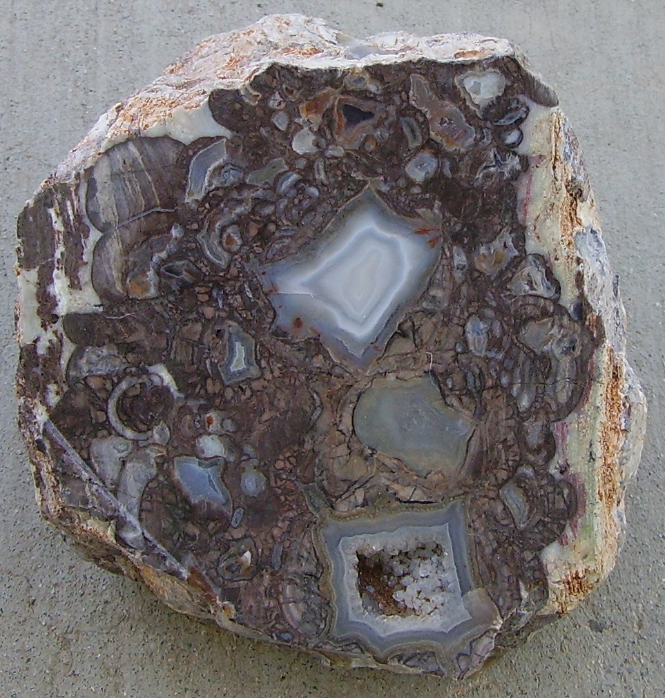 Sometimes, agates will have a little bubble of water trapped inside. This is called an enhydro. The water inside is millions of years old! The water can be seen if you shine a light on the agate from behind, or heard if you shake it. Eventually, the water will work its way out and evaporate via small capillaries, but the hollow part will still remain. It is also possible that water could enter the agate through the same capillaries. Enhydros can be found in watery places where agates are found, such as Brazil, Indonesia, and Oregon. Photos don’t show this very well, but on the link in the photo, the owner has some videos that show off the water inside.