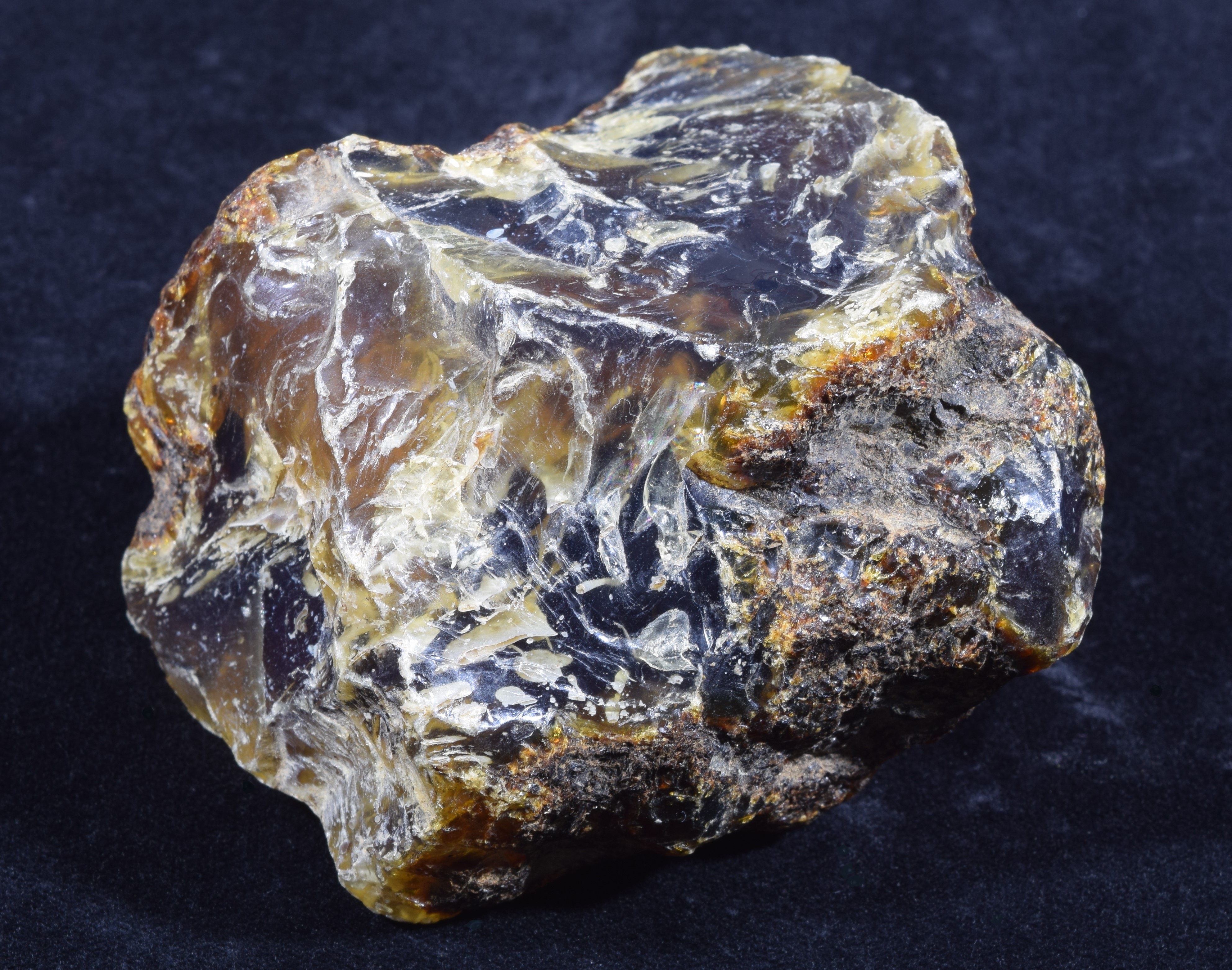 The amber shown is from Sumatra, Indonesia. It fluoresces a nice blue under Long Wave UV light. Also photographed under white light. Size 3″ x 2″.